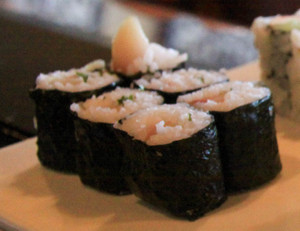 * Raw Fish Item* Sushi comes in two pieces embedded on rice.